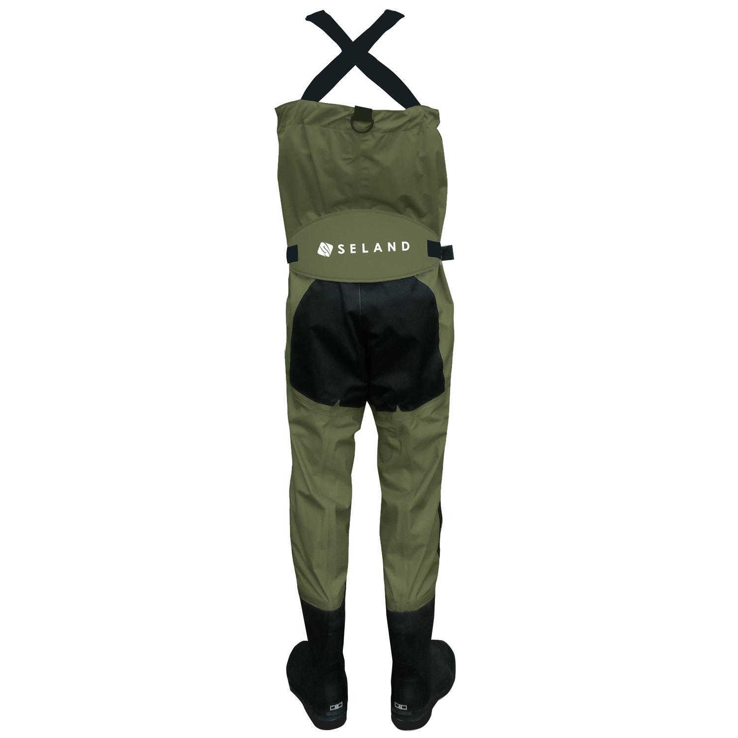 Vadeador transpirable realizado con material transpirable de 3 capas (WPR 10000mm H2O/ MVP 4000gr-m2-24hrs) con refuerzos en culera y rodillas-espinillas en nuevo material 600D Oxford/PVC (material de alta resistencia a la abrasión y repelente al agua).
