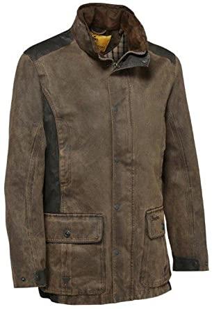 Chaqueta de caza polivalente, resistente, impermeable, respirable y silencioso. Hecho por 57% algodón y 43% de poliéster. Contiene membrana laminada impermeable y respirable, costuras soldadas, piezas contrastadas en hombro y en el lateral 100% algodón encerado de poliuretano y forro 65% de poliéster y 35% de algodón.
